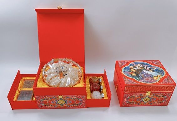 – Lớp ngoài: Túi giấy và Hộp quà đựng được thiết kế riêng biệt, độc đáo, sang trọng, tỉ mỉ đến từng chi tiết